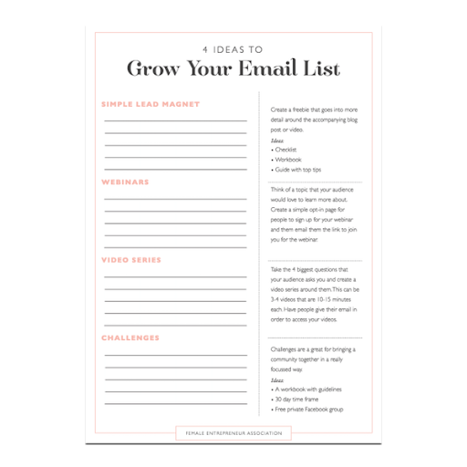 Download the checklist for 4 ideas to grow your email list! This checklist will help you come up with ideas and structure your list-building.