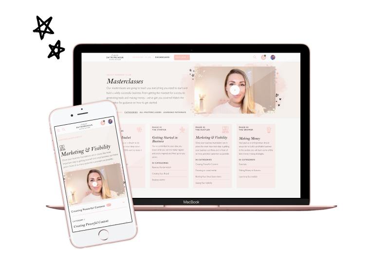 The membership is made up of 4 core phases that will walk you through how to build a successful business -from starting out to making money. Each phase is made up of Masterclasses that will walk you through specific topics.